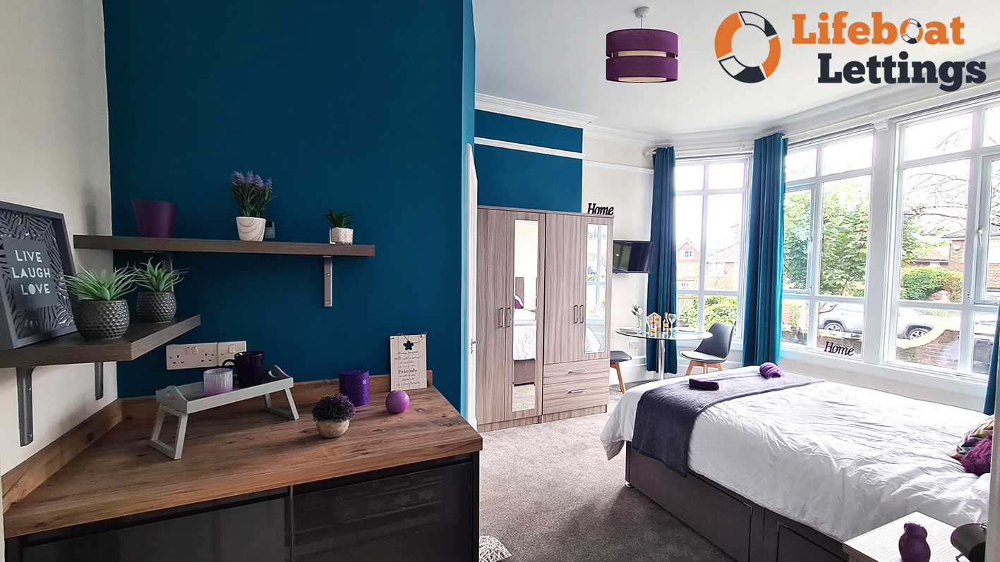 Room 3: £695pcm - This spacious right room is situated on the ground floor at the front of the property. The room includes a double bed and mattress, bedside table, chest of drawers, tea station and a flat screen TV. The room also has an ensuite shower room.